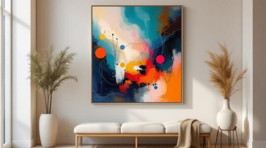 L’adaptabilité de l’art abstrait constitue son atout majeur en matière de décoration. Que vous souhaitiez dynamiser un salon moderne, adoucir une chambre ou structurer un couloir, les oeuvres abstraites s’adaptent à tous les espaces. Leur capacité à dialoguer avec différents styles architecturaux – du minimaliste au classique – en fait des alliés décoratifs polyvalents qui transcendent les tendances éphémères pour s’inscrire dans la durée.