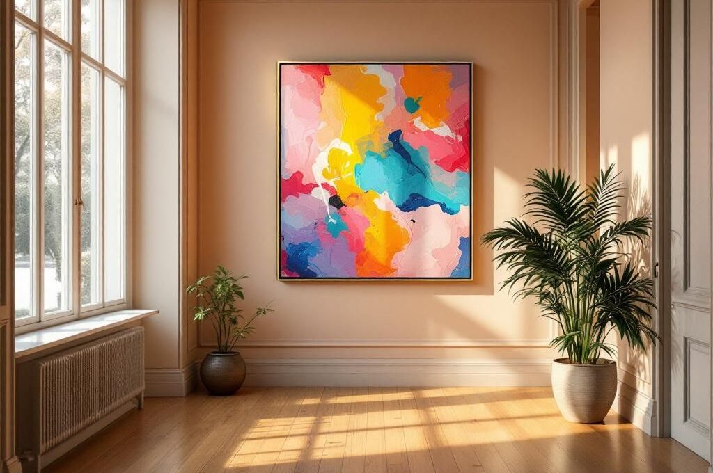L’éclairage mérite une attention particulière. Évitez les reflets directs en positionnant votre tableau perpendiculairement aux sources lumineuses principales. Un éclairage indirect ou des spots orientables permettent de mettre en valeur les couleurs et les textures sans créer d’ombres gênantes. La distance de recul recommandée équivaut à 1,5 fois la largeur de l’oeuvre pour une appréciation complète des détails.