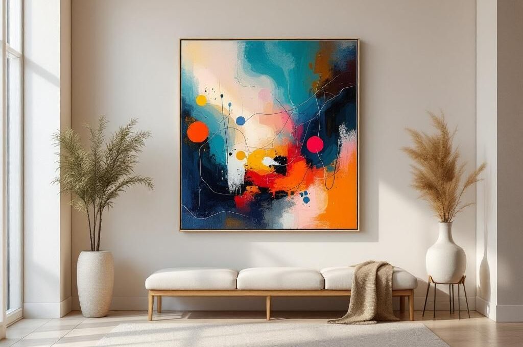 Les artistes abstraits maîtrisent parfaitement l’art des contrastes chromatiques. L’opposition entre couleurs chaudes (rouge, orange, jaune) et couleurs froides (bleu, violet, vert) crée des tensions dynamiques sur la toile. Ces contrastes génèrent du mouvement, dirigent le regard et structurent l’espace pictural.